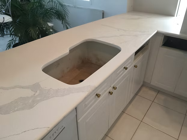 We fabricated and installed this Calacatta – Quartza Countertop.