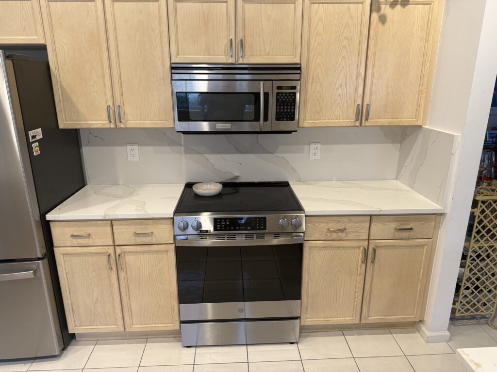 In this stunning Delray Beach, Florida home, Stone and Quartz fabricated and installed Calacatta Storm Gold countertops, bringing a touch of elegance and sophistication to the kitchen.