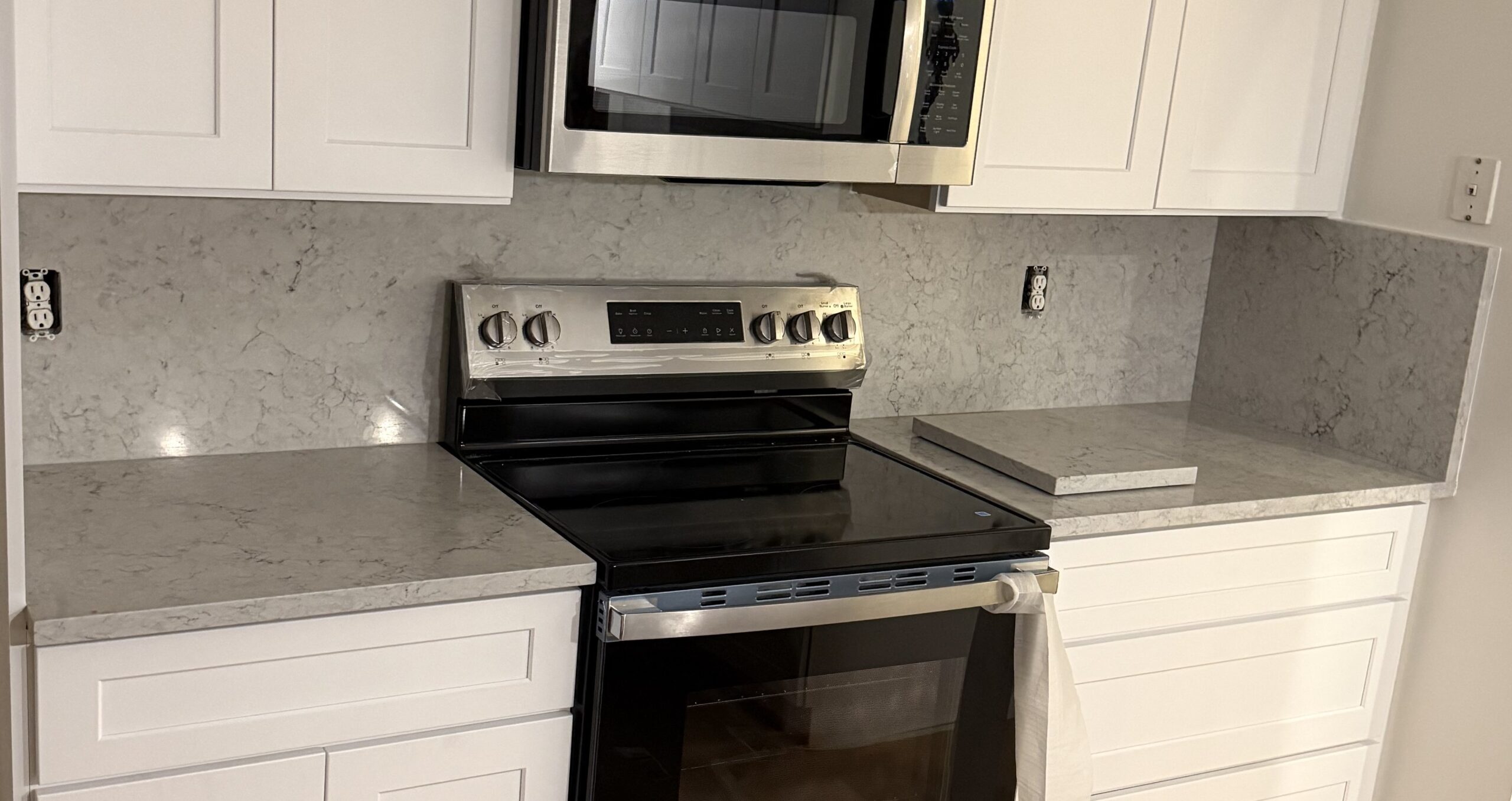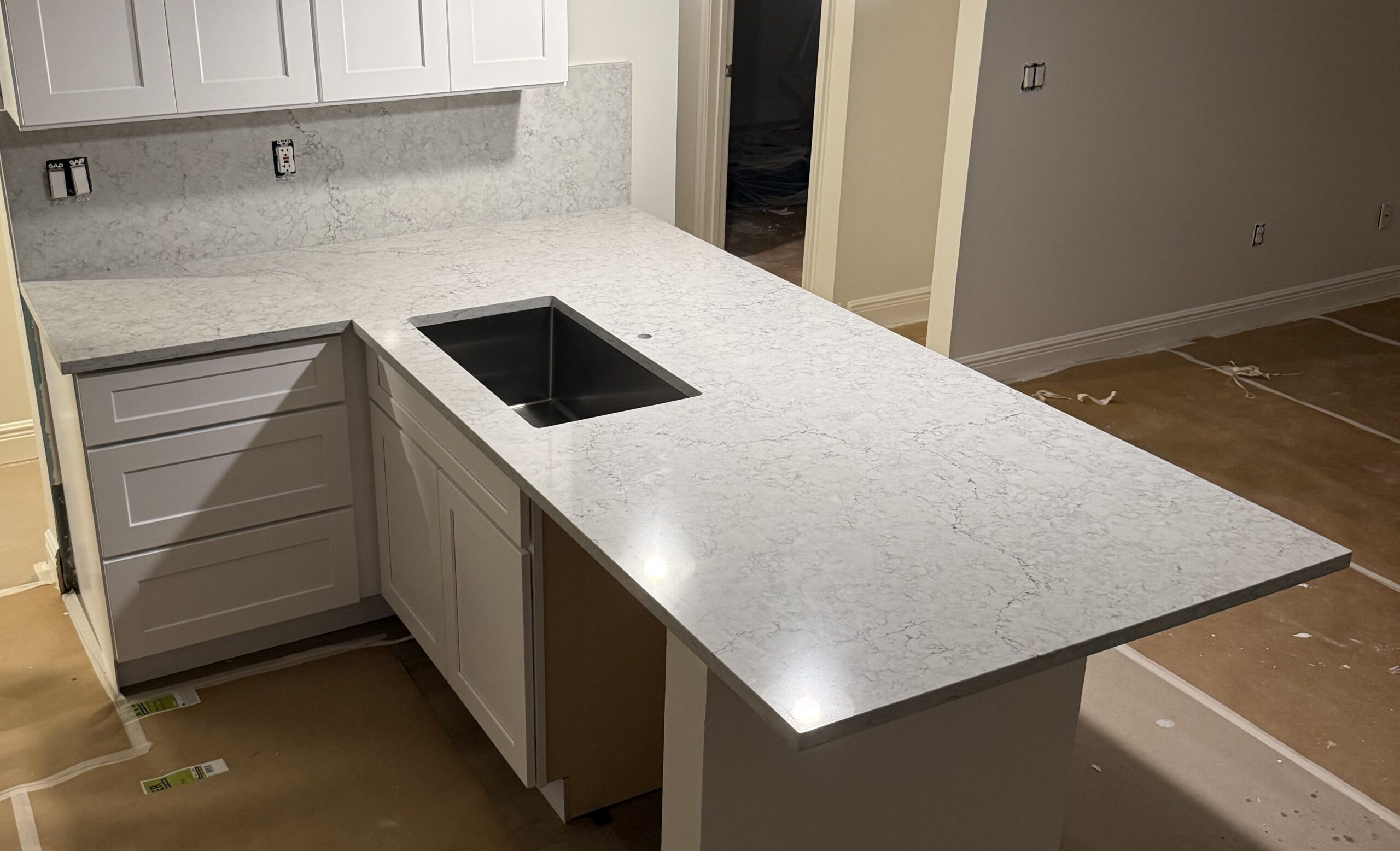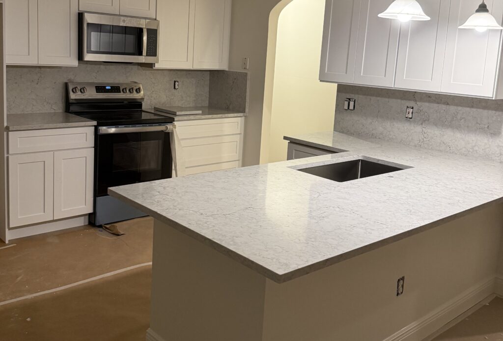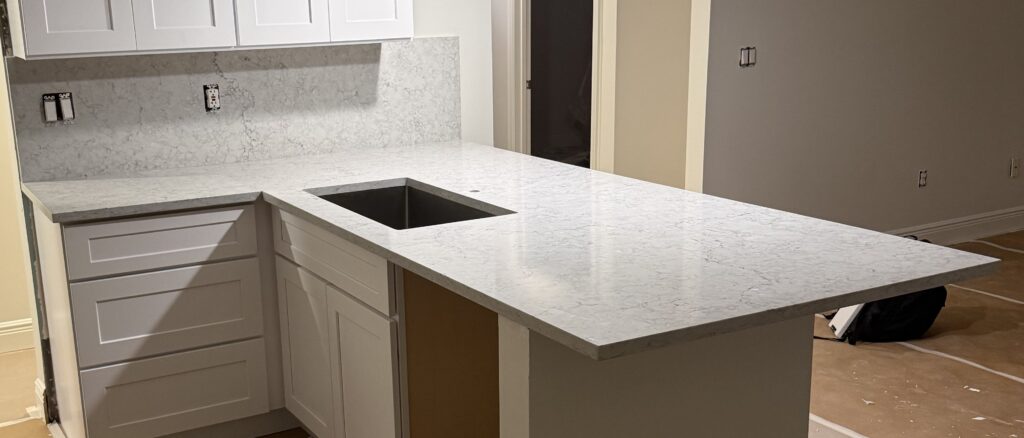 In this modern kitchen renovation, Stone and Quartz fabricated and installed Eclipse quartz countertops, creating a sleek, contemporary look. The wide overhangs were designed to maximize seating and improve functionality, making the space perfect for entertaining or family gatherings.