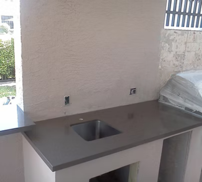 In this outdoor kitchen countertop we fabricated and installed Silestone quartz countertops in Boca Raton, Fl, we fabricated the outdoor kitchen countertop with a straight edge.