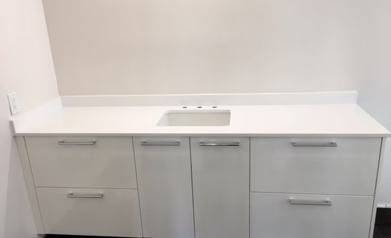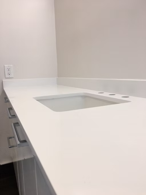 With:*4″Backsplash* Drop-in sink cut-outs.